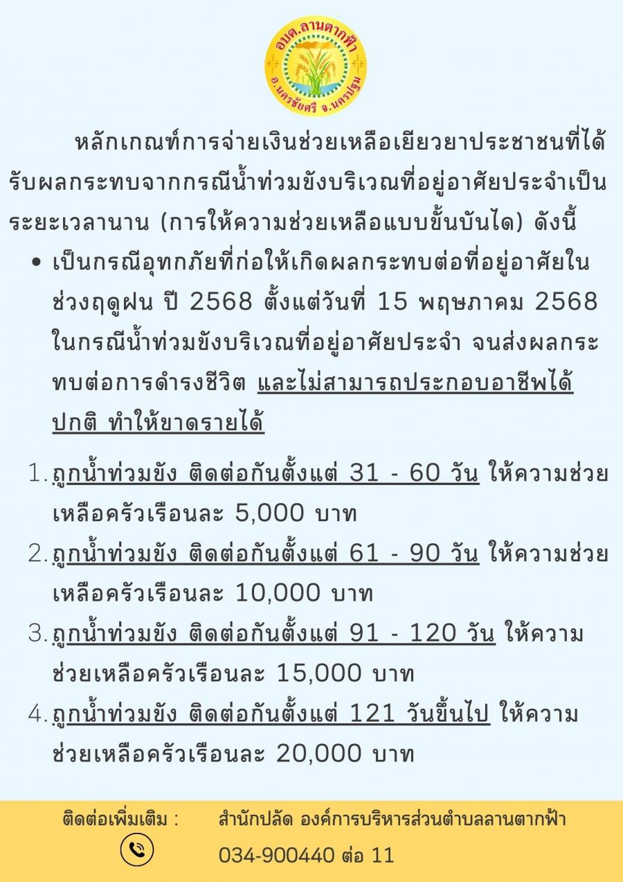 ประกาศรับลงทะเบียนช่วยเหลือผู้ประสบอุทกภัย จากกรณีน้ำท่วมขังบริเวณที่อยู่อาศัยประจำเป็นระยะเวลานาน (การให้ความช่วยเหลือแบบขั้นบันได)