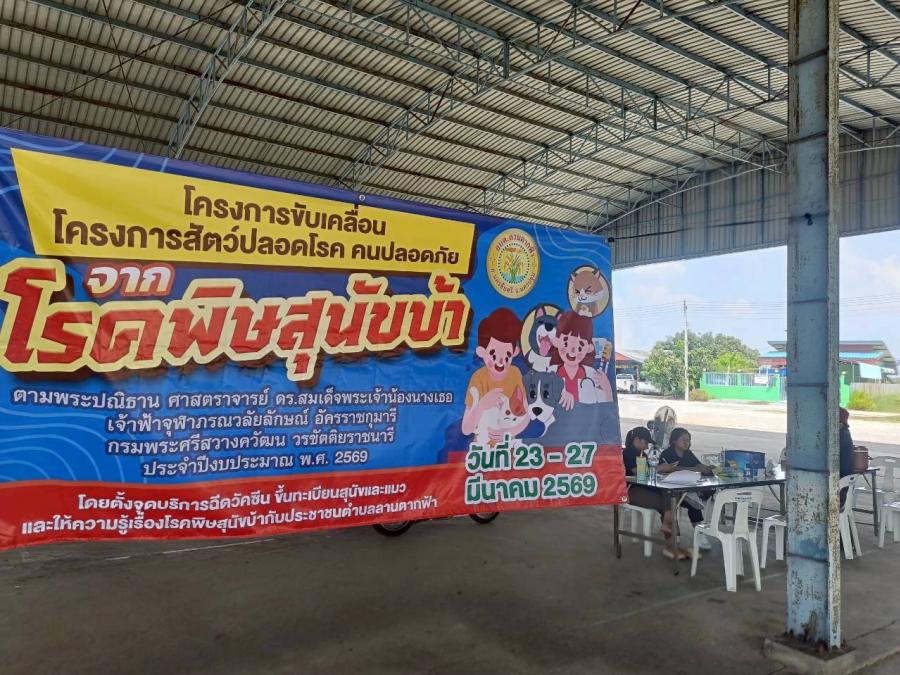 วันที่ 23 มีนาคม 2569 องค์การบริหารส่วนตำบลลานตากฟ้า ลงพื้นที่ให้บริการฉีดวัคซีนโรคพิษสุนัขบ้า หมู่ที่ 1 ณ ศาลาเอนกประสงค์วัดพุทธธรรมรังษี