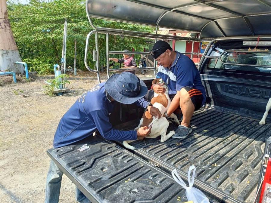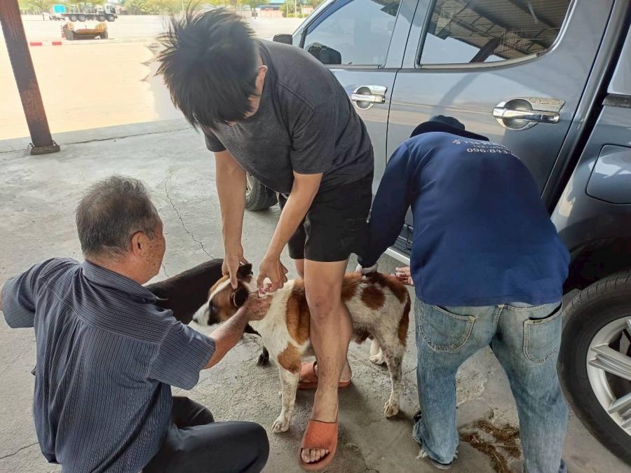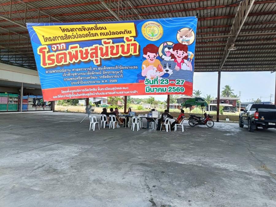 วันที่ 24 มีนาคม 2569 องค์การบริหารส่วนตำบลลานตากฟ้า ลงพื้นที่ให้บริการฉีดวัคซีนโรคพิษสุนัขบ้า หมู่ที่ 3